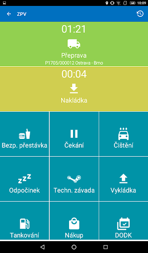 ★ zadávání činností ZPV (Nakládka, Vykládka, Bezpečnostní přestávka, Tankování, …)