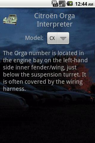 Orga Interpreter is a simple little program that allows you to caclulate the exact production day of a Citroen from its Orga number. Additionally it describes for many Citroen models where exactly the Orga number is located.