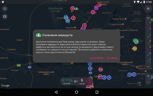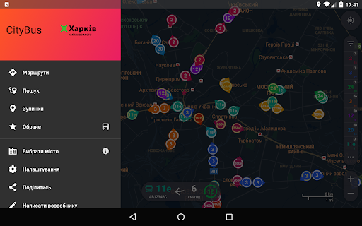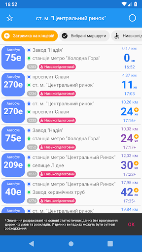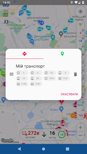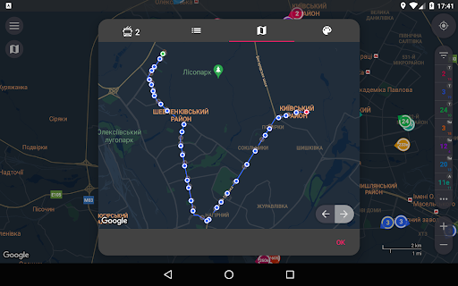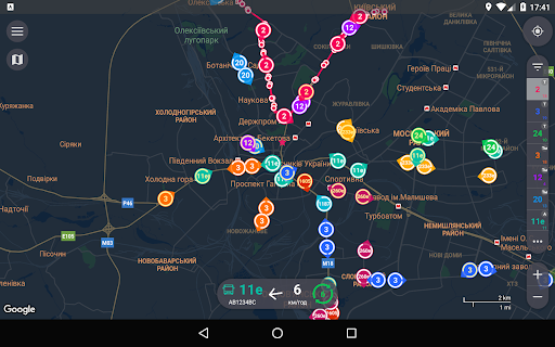 – Speed and heading visualization. Only one glance at map allows you to determine heading and speed of vehicles you need. Depending on speed changes size of colored area of ring around marker, and its center points in a direction the bus is heading.