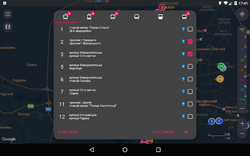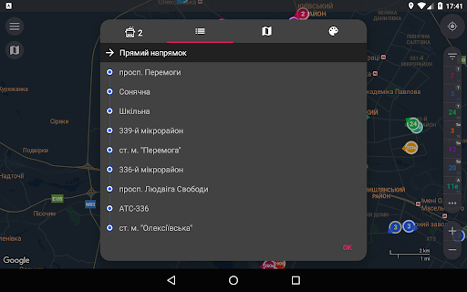 – Color routes identification. Distinguishing routes is quite easy, ’cause every selected route is determined not only by its number, but although by color of its marker.
