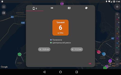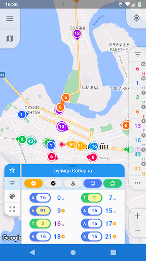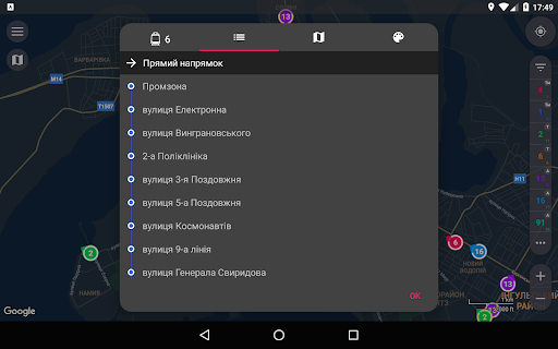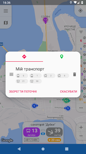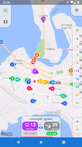 – Speed and heading visualization. Only one glance at map allows you to determine heading and speed of vehicles you need. Depending on speed changes size of colored area of ring around marker, and its center points in a direction the bus is heading.