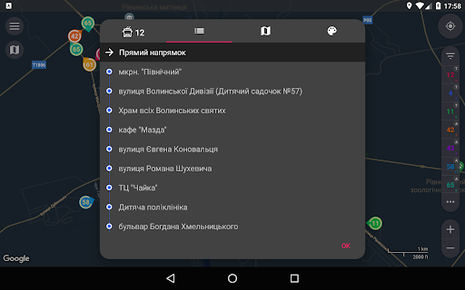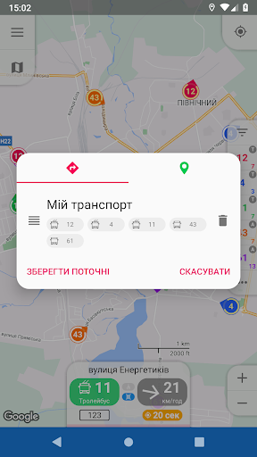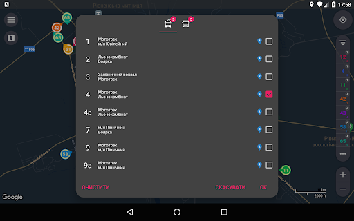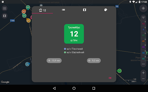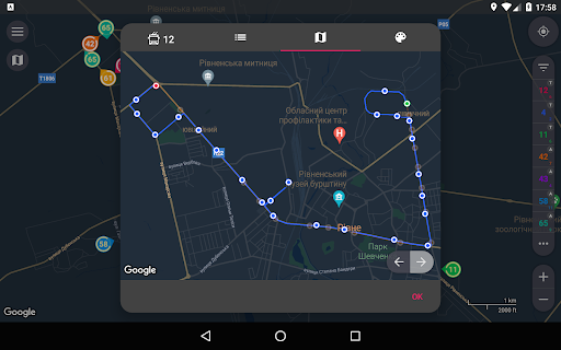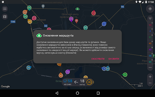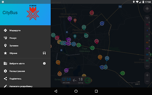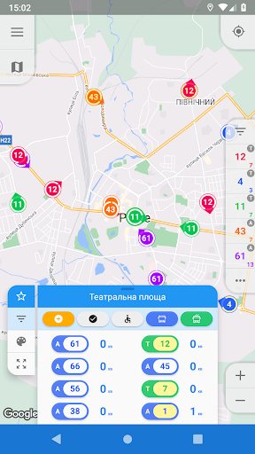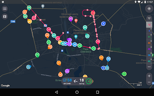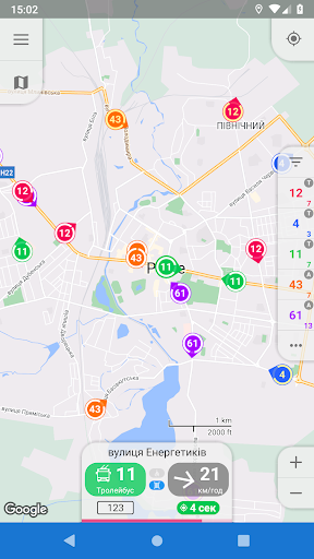 – Speed and heading visualization. Only one glance at map allows you to determine heading and speed of vehicles you need. Depending on speed changes size of colored area of ring around marker, and its center points in a direction the bus is heading.