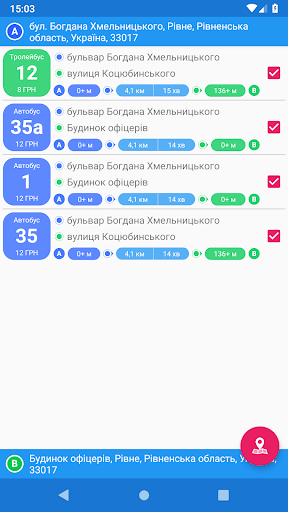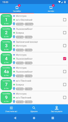 – Routes search. You only need to choose two points on a map, search results could be filtered and applied to display suitable vehicles.