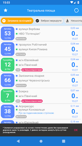 * Main app function – transport tracking – depends on the functioning of an external source of GPS data. Cooperation of the source and app is not guaranteed. Also, given the significant intervals of data updates sometimes, there may be some differences between the real transport position and the one that shown in the application.