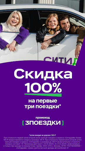 Каршеринг Ситидрайв — это аренда авто в Москве, Санкт-Петербурге и Сочи. Всё просто: регистрируетесь в приложении Ситидрайв: Каршеринг, выбираете авто и едете.