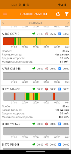 • «График работы» – отображает информацию по работе объектов в графическом виде и визуально демонстрирует активность использования автопарка.