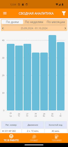 • «Сводная аналитика» – позволяет строить аналитические отчёты по пробегу, топливу и работе транспортных средств по всему автопарку.