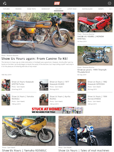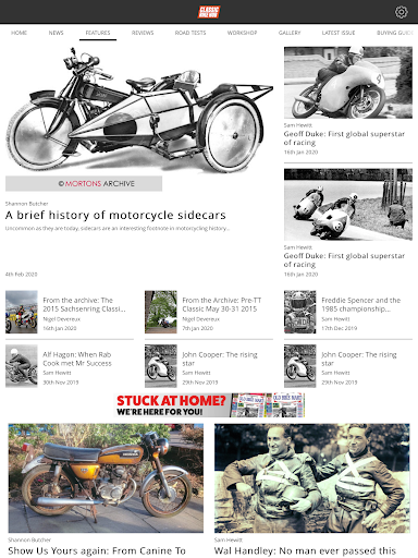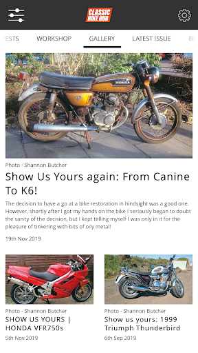 The Classic Bike Hub gives you news, views, features and reviews from the UK’s biggest classic motorcycle magazines. It is the essential app for any classic motorcycle lover. From the sump to the handlebars, this app covers everything from prewar and off-road machines all the way to modern classics. Collating content from Classic Bike Guide, The Classic MotoryCycle, Old Bike Mart, Classic Racer, Real Classic and Classic Dirt Bike, there is no other place for classic bike news.
