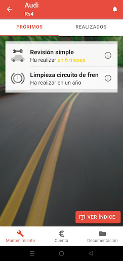 Accede a la información de mantenimiento de tu vehículo. Podrás ver el historial de mantenimientos realizados en el taller y cuales son los próximos mantenimientos a realizar.