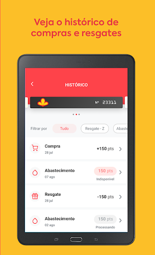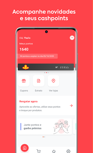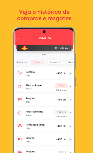 Verifique suas últimas compras, lançamento de pontos e saldo total no APP.