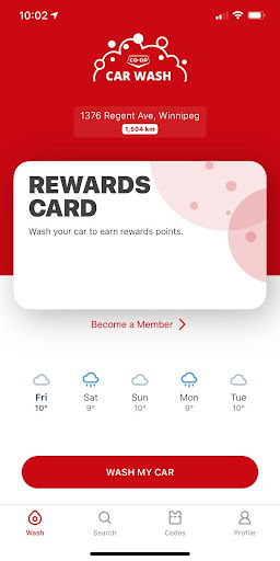 The Coop Car Wash App is a quick and convenient way to purchase a car wash at participating Co-op locations using a mobile device. The app has the following features: