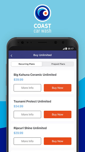 The Coast Car Wash App allows customers to buy washes, manage their Unlimited, Fleet Account and Pre-Paid Plans on the fly with their phones. Buy Pre-Paid and Gift Cards. Check Balances, Add Family and Fleet Members. Be the first to know about Special Promotions. The Coast Car Wash App is the easiest way to enroll into and manage your Unlimited Wash Plan by just taking a photo of your license plate. Also be the first to know about special promotions.