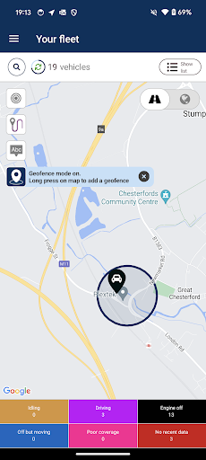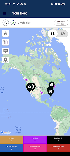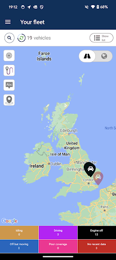 – View the positions of your fleet on a map, and the heading of moving vehicles