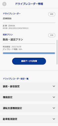 ドライブレコーダー本体の設定変更などを行うことができます。