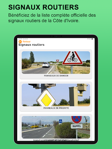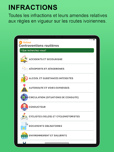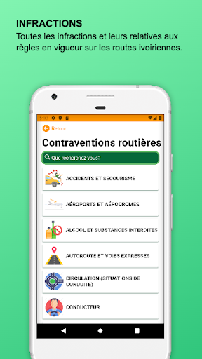 Votre application Conduire en Côte d’Ivoire vous fournit toutes les informations utiles sur la règlementation du code de la route et du transport routier en Côte d’Ivoire.