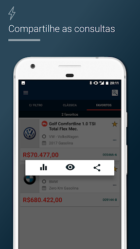 O MasterFipe trabalha de modo off-line, sendo atualizado de forma automática sempre que estiver conectado à internet no aplicativo e houver atualizações disponíveis de preço!