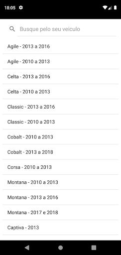* Diversos fabricantes de veículos e seus respectivos modelos disponíveis para consulta.