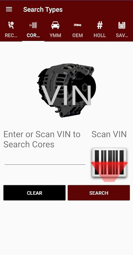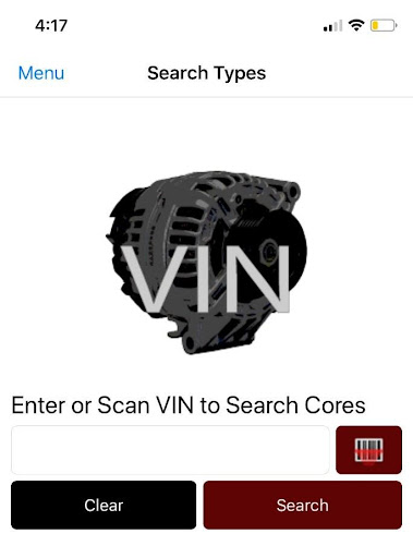 2. CORES – Users can enter or scan VIN barcode to view core parts that we are purchasing. Users can use the Core features without processing airbags. Users are pre-screened before access is granted to use the App for cores.