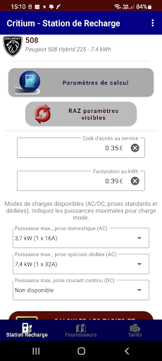 Critium (contraction of Crimen Pretium, charging price) makes it possible to calculate the cost of charging a plug-in hybrid or electric vehicle on a public station and to compare this cost with that of charging at home and the cost of using it with fuel. Indeed, many terminals are charged according to time, and the cost therefore depends on the charging power of the station and the vehicle. For plug-in hybrids, sometimes the cost of charging exceeds that of using fuel, making the use of such a station unnecessary.