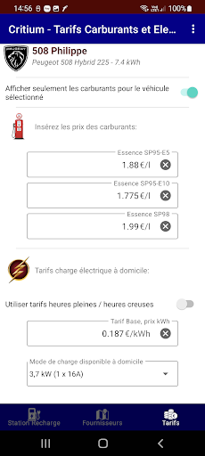 To use Critium, you must fill in your vehicle parameters. You can use pre-registered templates to help you. However, the range in electric mode is that given by the manufacturer, as is the fuel consumption. You will therefore have to adapt these parameters with your own consumptions to best adjust the information given.