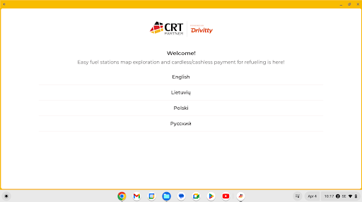 A Game – Changing solution for Transport companies! If you want… To make cardless payments for refueling, you need to authorize within CRT Partner app. Get username and password from your CRT Partner manager beforehand.