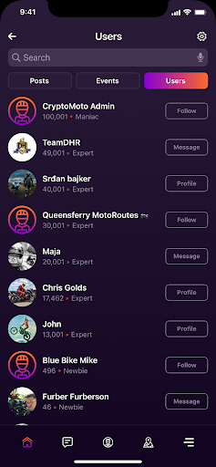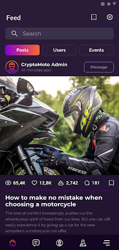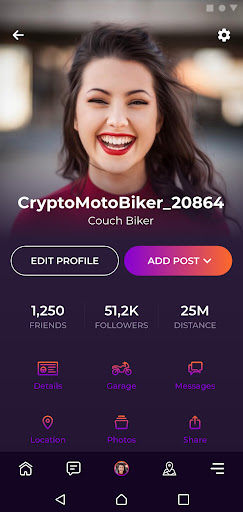 With an intuitive and enjoyable interface, the CryptoMoto App offers easy access to a vast database of reliable and verified by other motorcyclists service workshops and motorcycle technicians. Only in CryptoMoto App you have direct entry to spare parts from all moto shops around, worldwide moto events, private and public chats. Improve your moto travel with our interactive map, accident warnings, walkie-talkie and many other useful features. Moreover in CryptoMoto app you can earn points for doing what you love most: riding!