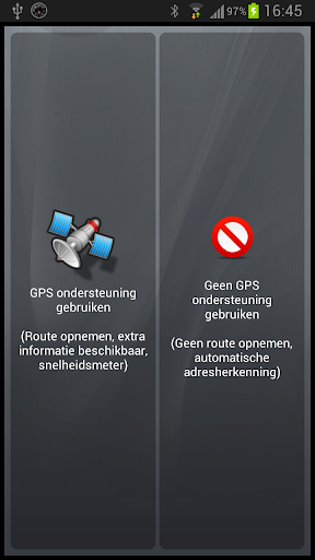 INTERNET: internetverbinding is gewenst voor automatische adresbepaling, adressen ophalen, maps bekijken, de Dropbox ondersteuning en de automatische export.