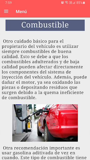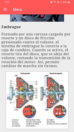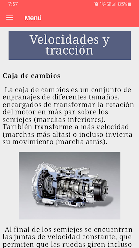 La app “Curso de mecánica automotriz” te entrega un manual automovilístico enteramente en español que te explica parte por parte cómo está compuesto un carro y cómo se relacionan sus componentes entre sí. En otras palabras, con esta guía aprenderás habilidades operativas y conocimientos tecnológicos referentes a la ocupación y los procesos operativos del mantenimiento, reparación y control de un automóvil.