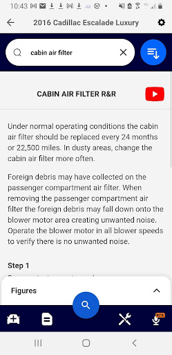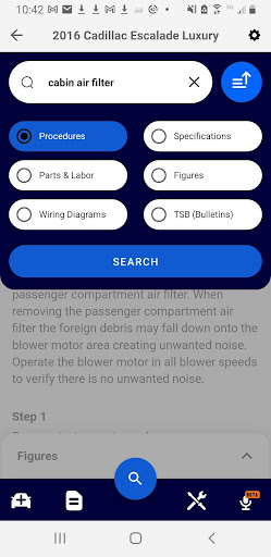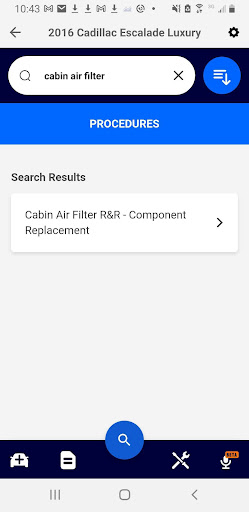 Component Locations: Search the location of a component that you need to replace, such as the location of a Cabin Air Filter, quickly and easily right at the vehicle.