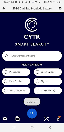 Keyword Search: CYTK Smart Search™ offers access to over 1 million pieces of content covering OEM repair information for all OEM Brands, right at your fingertips. Just type in a component name and select the category of information you’re looking for and Smart Search™ will provide relevant OEM content right at the vehicle.
