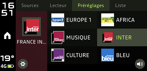 – Media: listen to the music you like amongst thousands of web radio stations, music on your phone, a USB flash drive or the vehicle radio.