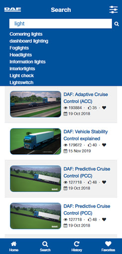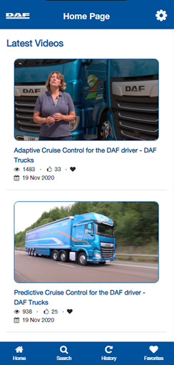 The DAF Video App allows truck drivers and DAF enthusiasts to learn more about our truck range LF, CF, and XF. A large selection of videos and animations provide hands-on insights into functionalities, safety systems, and driving efficiency. No registration needed, you can just download the app and start watching DAF videos.
