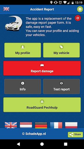 Reporting your car damage to your insurance company with the Accident Statement app is now fast and easy. The car damage report is stored online (protected), so you will always have a copy of it available. On the website you can log in, check and complete the information before transmitting it to the right insurance company.