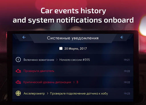 – Sound notifications when car’s critical readings are reached. Peak values are adjusted autonomously.