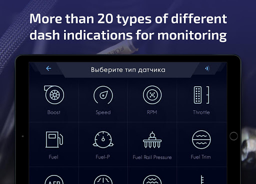 – Monitoring of additional devices readings. Install any additional sensor (oil pressure sensor, coolant pressure or any other) and observe the readings in real time from your tablet, smartphone or any other device.