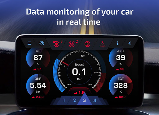 – Monitoring of parameters received from ECU in real time (temperature, speed, revolutions, etc) and displaying image in the form of widgets.