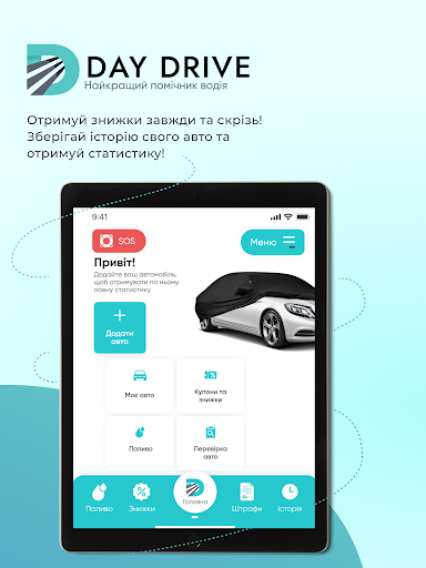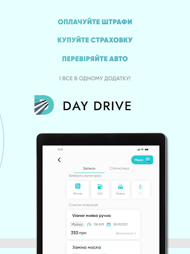 DayDrive – додаток, у якому ви знайдете все, що потрібно початківцю або досвідченому автомобілісту: акції та знижки на автотовари, встановлення ГБО, автозапчастини, авто з США, послуги СТО, можливість купити страховку, викликати евакуатор, якщо потрібна допомога, зручну оплату штрафів та багато іншого. Усі послуги знаходяться на одній платформі, що заощаджує час водія.