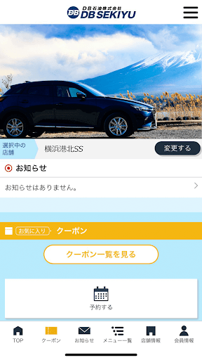 当社のアプリ「DB石油会員アプリ」ではアプリで簡単に洗車・コーティングなどのご予約や愛車のメンテナンス管理が可能の他、ご登録いただいた店舗で利用いただけるお得なクーポンや各種メニューの割引情報を配信しております。