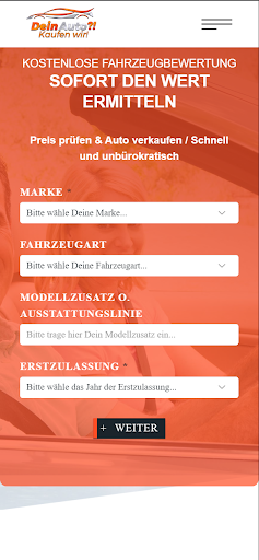 Du möchtest dein Auto verkaufen, aber du weißt aber nicht, wo du anfangen sollst? Dann ist unsere App genau das Richtige für dich! Unsere Autoverkaufs-App macht es leicht, Dein Auto schnell und einfach zu verkaufen. Mit nur wenigen Fingertipps auf deinem Smartphone kannst du dein Auto zum Verkauf uns anbieten. Mit unserem benutzerfreundlichen Formular kannst du außerdem eine sofortige Schätzung des Werts deines Autos erhalten, damit du genau weißt, was du erwarten kannst.