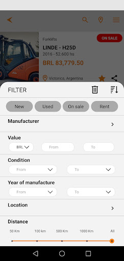 An App designed and developed exclusively for machineries, managing Ads, search filters and sections with expert specifications accordingly each market segment or subsegment: Construction, Material Handling, Ports, Aerial Platforms, Cranes and Agricultural.