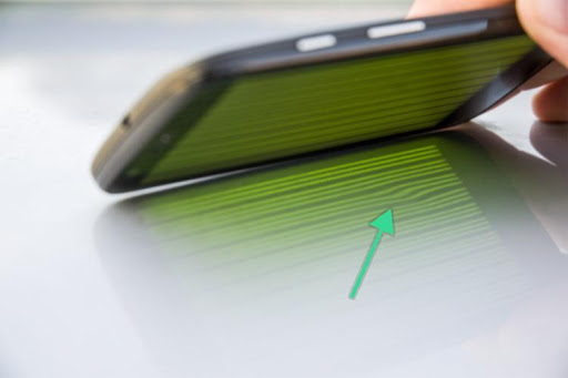 – The smartphone or tablet is held over the surface, so that the pattern reflected in the surface