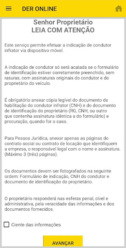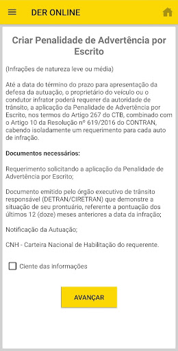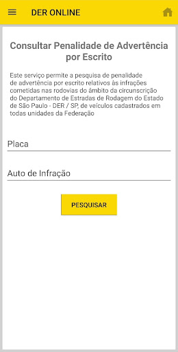 O Aplicativo do DER disponibiliza aos usuários consultar Processos de Penalidade de Advertência por Escrito,