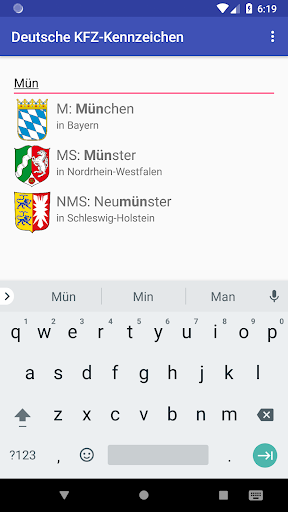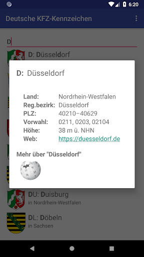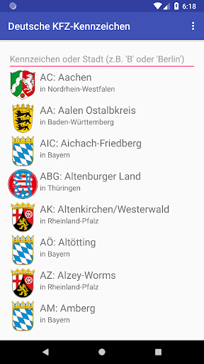 Mit dieser App können Sie nach einem Stadt-Kürzel eines KFZ-Kennzeichens, oder nach dem Namen einer Stadt suchen und bekommen eine Auswahlliste möglicher Städte und Kreise angezeigt.
