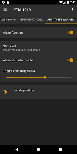 – Configuration of anti-theft warning (e.g. sensitivity and alarm settings)