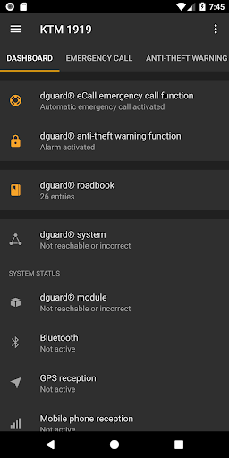 dguard® protects both you and your motorbike. It intelligently detects an accident and contacts automatically the emergency coordination centre (PSAP) – even if you aren`t able to. dguard® is the adequate emergeny call system for motorcycles and suitable for installation on any motorbike. An anti-theft warning function is also integrated into the dguard® app. If somebody touches your motorbike without permission, your dguard® system will automatically inform you via the dguard® app.