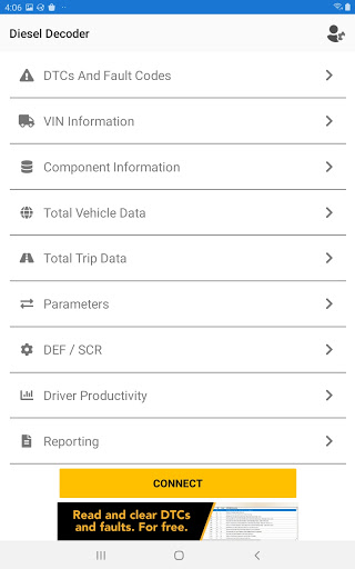 Diesel Decoder is a heavy vehicle and equipment diagnostics tool for reading Diagnostic Trouble Codes, live data, and vehicle information using the blue-tooth Diesel Laptops Diesel Decoder hardware (required). The app can also perform Bi-directional commands such as DPF regens on all medium and heavy commercial vehicles. Diesel Decoder also allows the user to generate Vehicle Health reports that may be viewed, printed, or viewed on the Diesel Health platform. Visit www.diesellaptops.com/products/diesel-decoder?_pos=4&_sid=743c893bb&_ss=r for more information or to purchase the needed hardware.