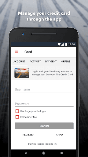 Financing is also available with our convenient Discount Tire credit card. If you’re already a cardholder, paying your bill has never been easier than through the Discount Tire app!