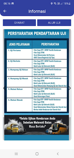1. Syarat dan Informasi mengenai Retribusi Pengujian Kendaraan Bermotor.