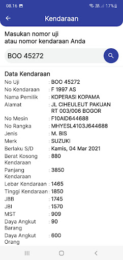 Aplikasi yang dapat membantu pemilik kendaraan umum atau angkutan barang untuk memberikan kemudahan dalam proses pemeriksaan serta proses administrasi seputar pengujian kendaraan bermotor :