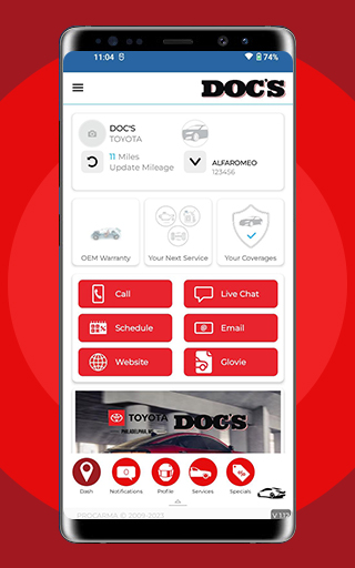 The DOC’S Auto Care app provides a portal for users to: